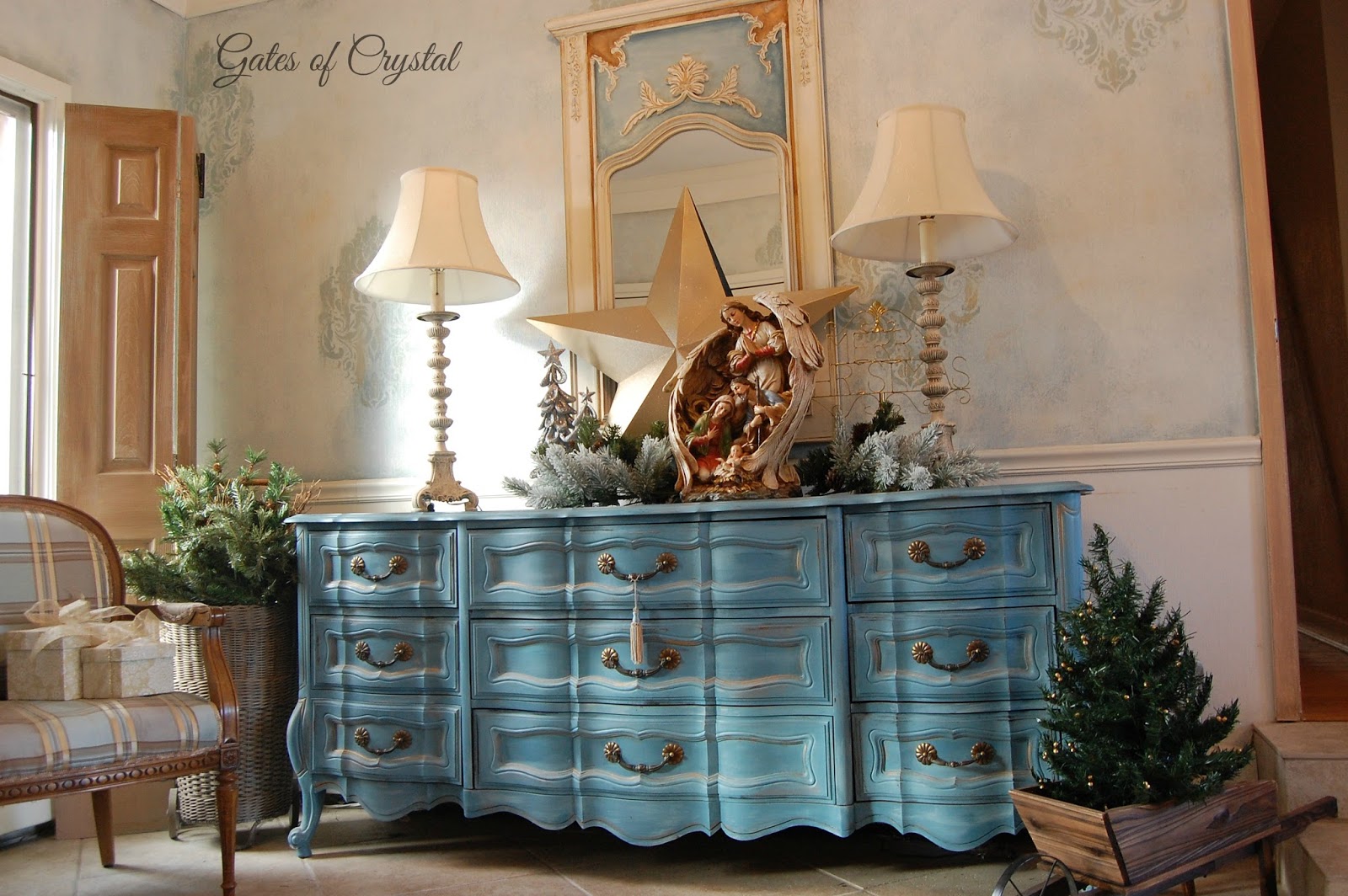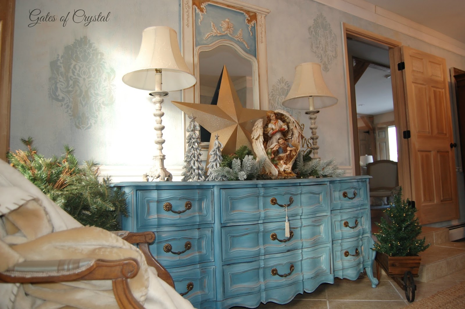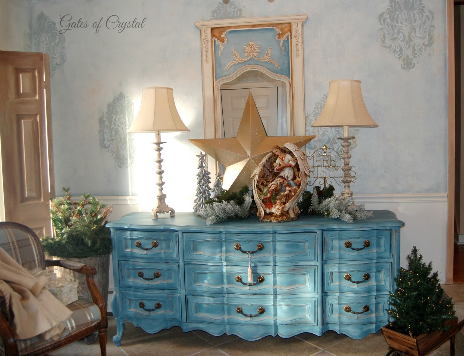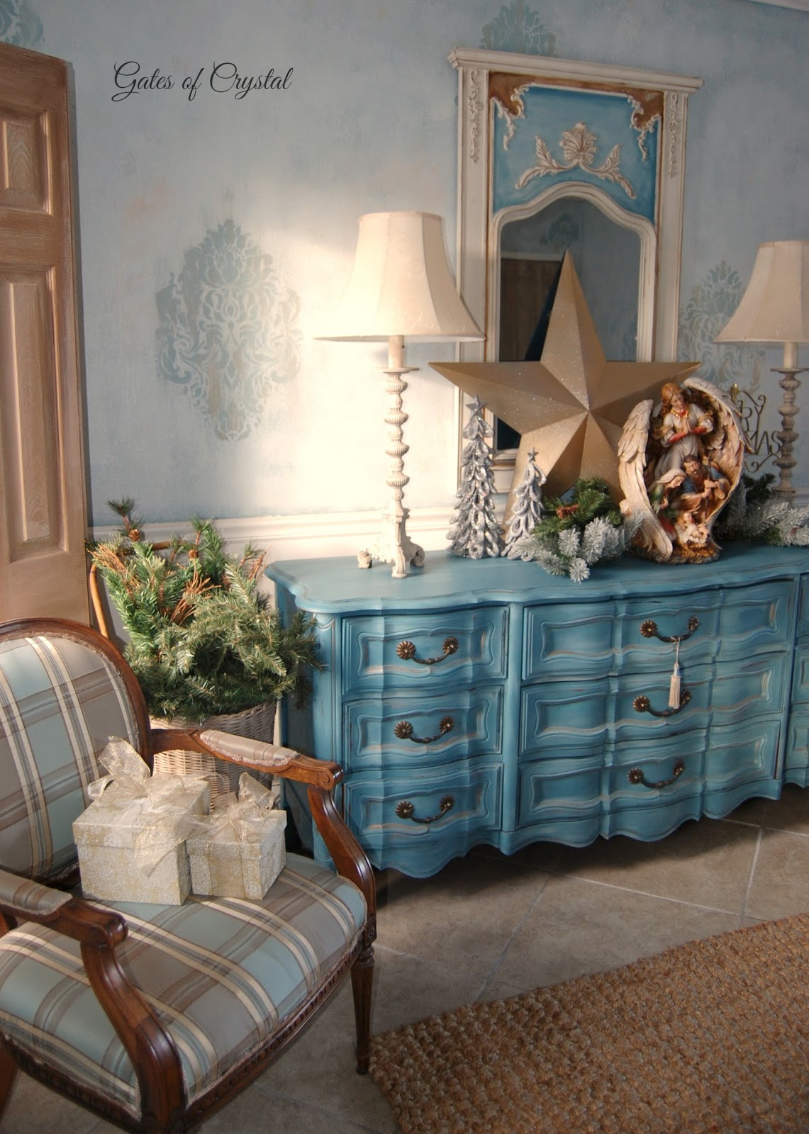 When I redecorated a few years ago and went to blues, I gave away all my red things and began to figure how to do a 'Blue Christmas.' So I thought it would be fun to share with you all the ways I have found to have a blue French Country Christmas.