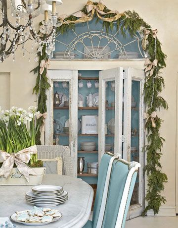 You know I love blue and white and it's so fresh and lovely in the winter with Christmas greenery. And I love paper whites and white amaryllis. My mom used to force them at the holidays and I always thought they were so wonderful and smelled so good.