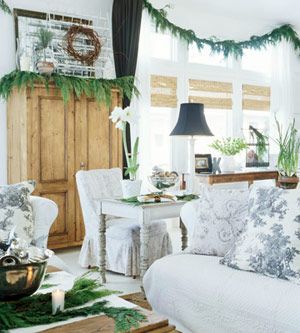 You know I love blue and white and it's so fresh and lovely in the winter with Christmas greenery. And I love paper whites and white amaryllis. My mom used to force them at the holidays and I always thought they were so wonderful and smelled so good.
