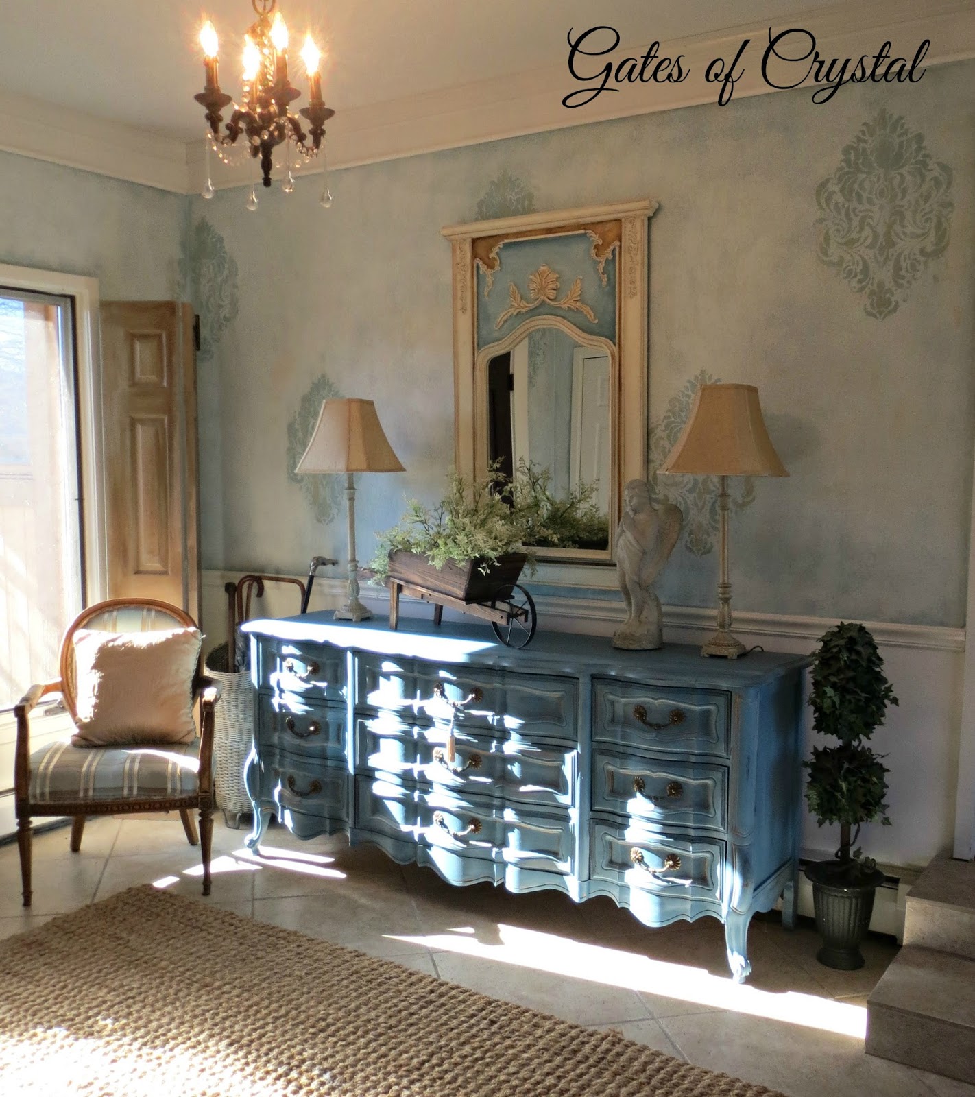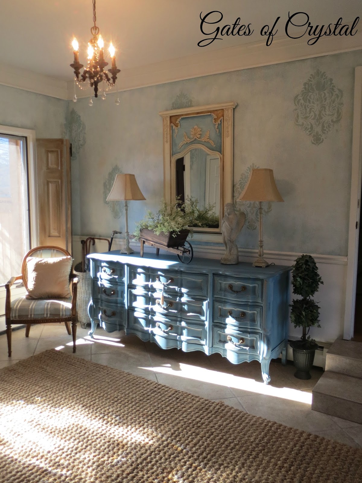 We had an extremely harsh winter here in Michigan this year. And one snowy, icy day I decided to redecorate our entry. I genuinely loved this room before but always felt it didn't flow as well with the rest of the house as I'd like. I wanted less Traditional and more French Country.
