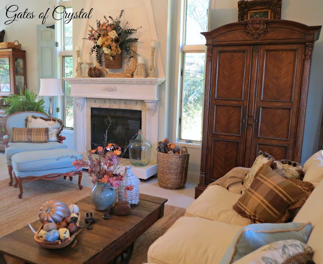 I'm hosting a Bible study in my home this Fall and Winter so it's so much fun to decorate knowing that others will enjoy it weekly. "Others" being women - that is! Not 6'4" basketball players that don't notice anything except how many cows I have in my kitchen! lol