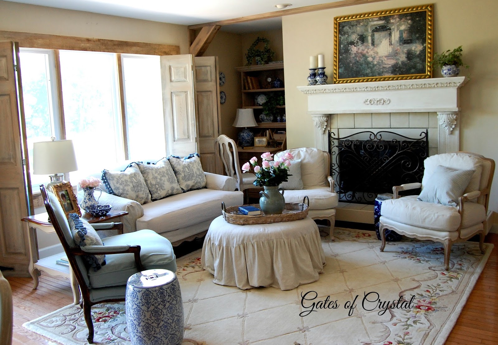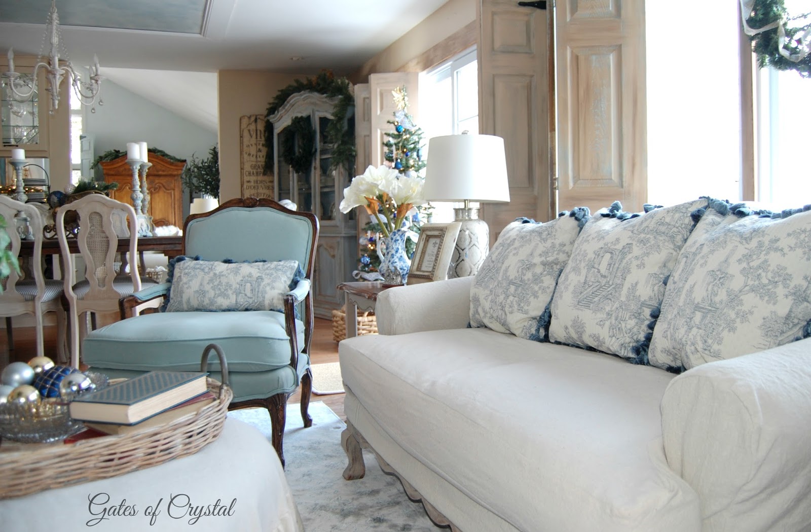 The last time I posted pictures of our living room, it was filled with blue and white toile and blue and white porcelain. But recently I decided to change it up and use a lot more neutrals. The nice thing is I didn't spend any money making these changes. They're all things I already had.