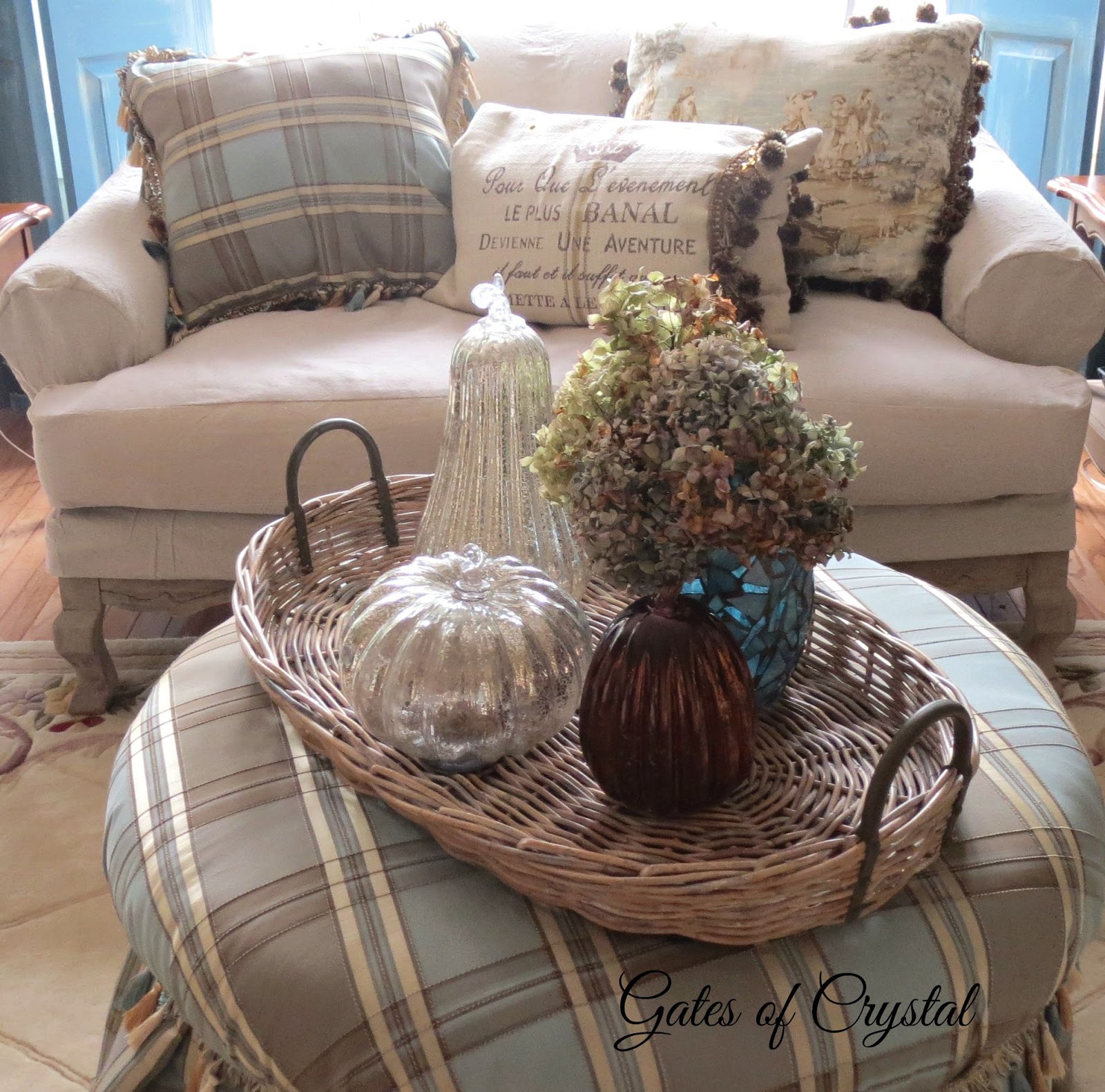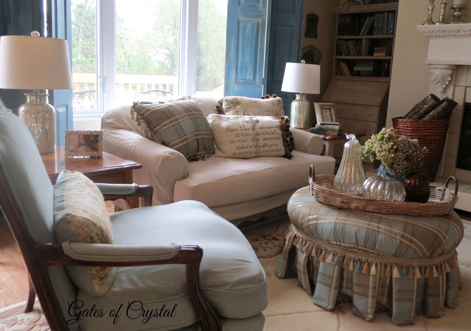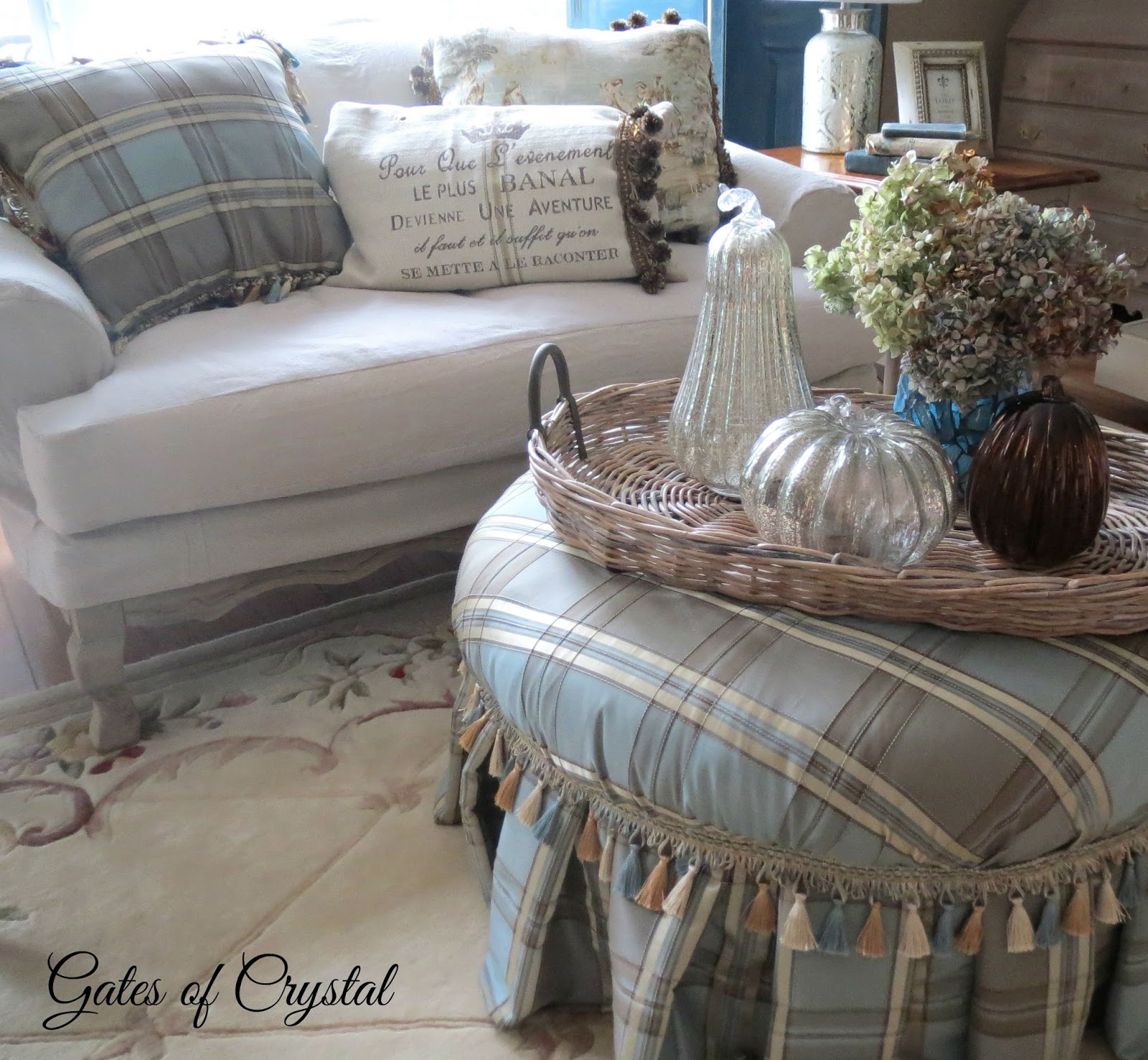 I bought this ottoman several years ago at a second hand store. Recently I had it slip covered with a simple cover that I made from drop cloth fabric. But I knew that was temporary.