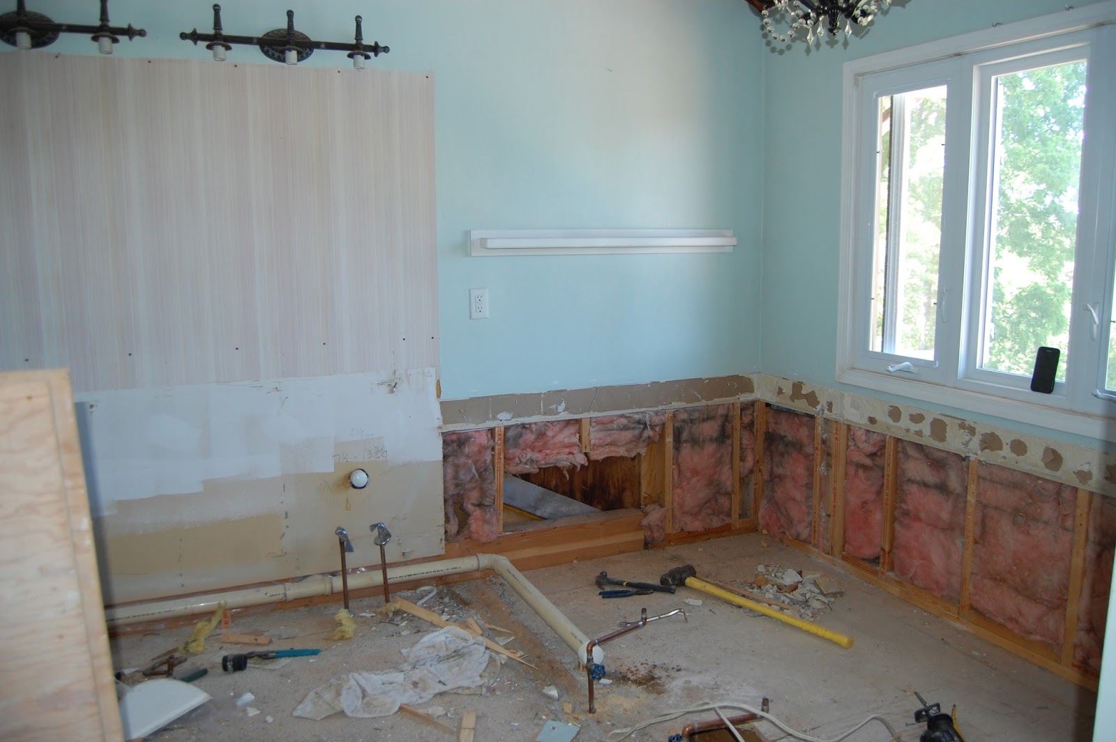 The main one was a drain pipe placement that our plumber said that "in the 20+ years of his being a plumber, he had never seen anything like it!" We were not able to figure out if our master bath was an addition after the house was built, or if it was a walk-in closet and half bath that was changed to a master bath, but whatever it was, it had resulted in this drain pipe being 6" out from the wall and 6" up off the floor.