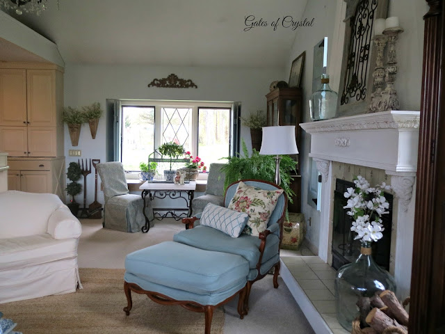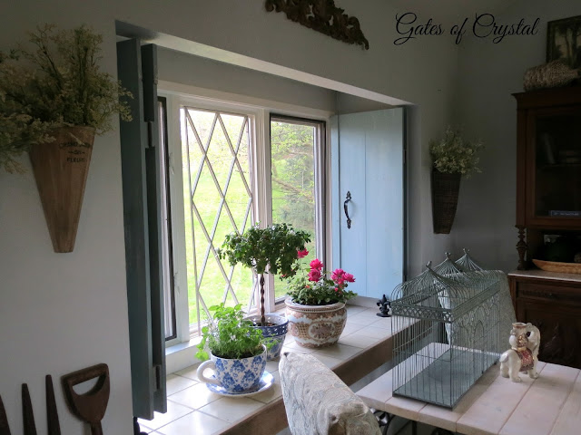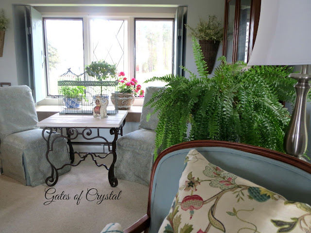 I've also been pulling out all my bird cages and topiaries. Looks like a little bit of English Country has invaded the French Country. ;)